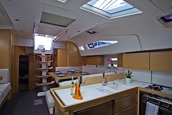 Nya Elan 494 är framtagen för just semestersegling i medelhavet och inget annat. Båten har den största sittbrunnen i klassen 48-52 fot och en stor, öppen och rymlig salong. Självfallet är nya Elan 494 utrustad med den senaste tekniken. Elan 494 har bra seglingsegenskaper och är enkel att segla med sin stora furling genoa och rullstor. Båten har 5+1 hytter med 10+2+1 bäddar. Båten är registrerad för max 12 personer. Missa inte att boka din vecka på vår mest prisvärda segelbåt.